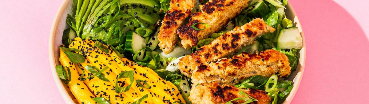 Vill du ha en god skål med massor av färska grönsaker och kycklingfilé, men du är vegan, vegetarian eller bara vill prova något nytt? Inga problem, vi har det du behöver! Prova vår Grilled Chicken Mango Avocado Bowl med kycklingfilé från Rügenwalder Mühle x KoRo!
