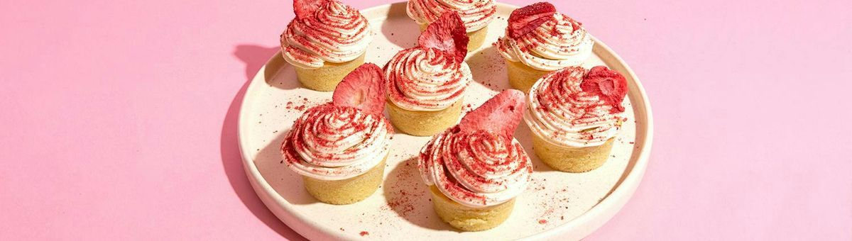 The bag of freeze-dried strawberry slices is empty, but there are still a few crumbs left in the pack? They are just as tasty as the slices themselves! Throwing them away is out of the question, so we'll use them to make cupcakes with strawberry frosting! By the way: if the strawberries aren't available, the cupcakes also taste great with other freeze-dried berries, such as raspberries!