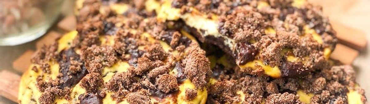Meng voor de crumble het kokosmeel, 10 g speltmeel, 5 g cacao, 20 g erythritol en de appelmoes. Verwerk tot kruimels en verdeel over het kwarkmengsel.