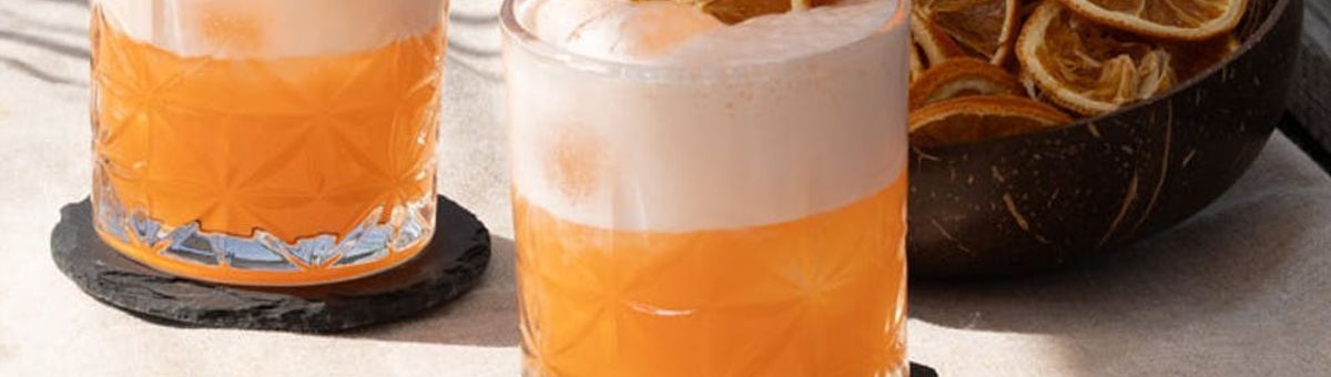Du vet hur det går till: Lägg först isbitar i glaset, tillsätt ingefära-mandarinshot och aquafaba. Skaka sedan tills skum har bildats.