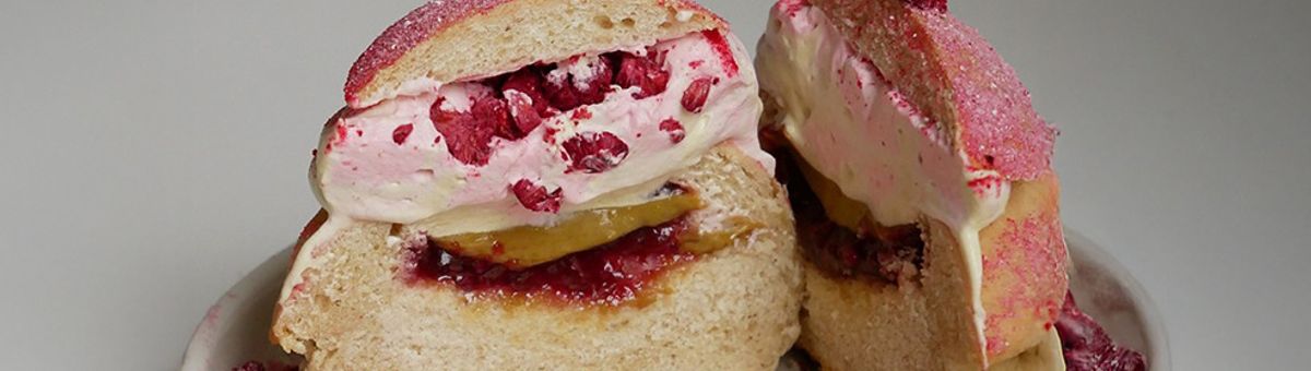 Dessa semlor med pistage- och hallonswirlar börjar med en lätt, mjuk deg och fylls lager för lager. Pistagenötter och hallon kombineras både i fyllningen och i den silkeslena vispgrädden som vrids vackert över toppen. Avslutas med rosa hallonpulver för en elegant, lätt syrlig twist.